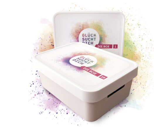 DIE BOX beinhaltet 8 Stationen mit digitalen und analogen Materialien. 4 Stationen bearbeiten die Themen Glück, Positive Psychologie, Lebenskompetenzförderung und Identitätsbildung. 4 Stationen bearbeiten die Themen Suchtmittelkonsum, Förderung der Risikokompetenz, Sensibilisierung auf Gefährdungspotenziale, Reflexion des Konsumverhaltens.
