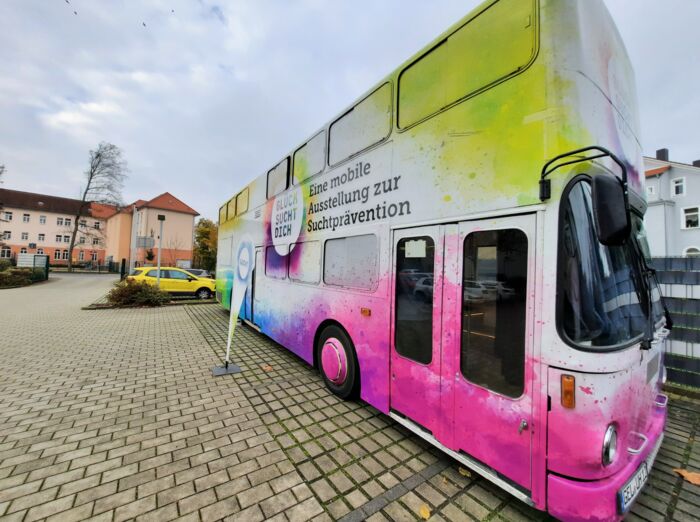 Vom 5. bis zum 9. Mai war die mobile Ausstellung zur Suchtprävention auf dem Marktplatz der zweitgrößten Stadt Nordsachsens zu Gast.