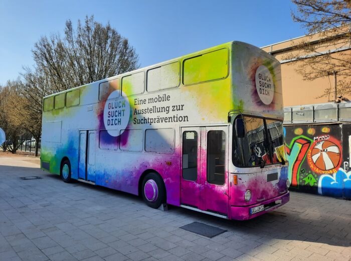 Auf der Tour von GLÜCK SUCHT DICH durch den Landkreis Leipzig stoppte die mobile Ausstellung zur Suchtprävention vom 25. bis 28. Mai 2021 in Grimma und Brandis.