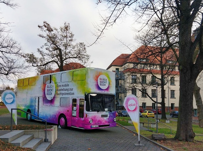 Am 19.04.2024 stand unser GLÜCK SUCHT DICH-Bus vor dem Sächsischen Staatsministerium für Soziales und Gesellschaftlichen Zusammenhalt und öffnete seine Türen für Vertreter*innen der Suchtprävention aus ganz Deutschland.